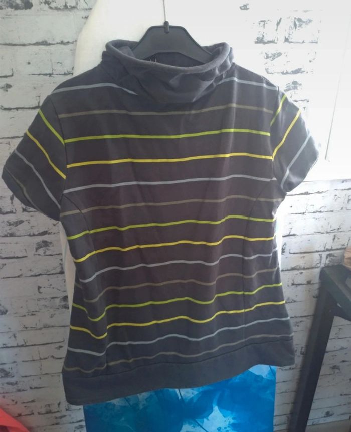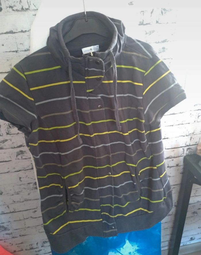 Sans manches Fond gris foncé Rayé coloré (jaune vert bleu gris) Noté taille 4 mais pour moi correspond à un 40 📣 autre vêtements femme via ⬇️ #angelotitou160304femme #angelotitou160304Lfemme 🔊 Pensez aux lots pour réduire les frais de port et profiter des réductions activées dés deux articles CN