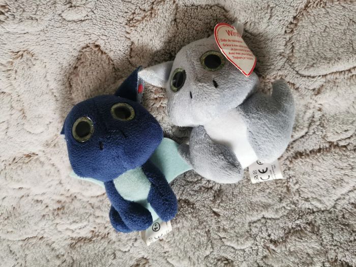 Mini peluches créatures Winter TY McDonald's lot de 2 non dissociable. Le lot comprend un animal gris et un bleu, les deux sont neufs, le bleu n'a plus d'étiquette, petite taille 8 cm, poids 20g.