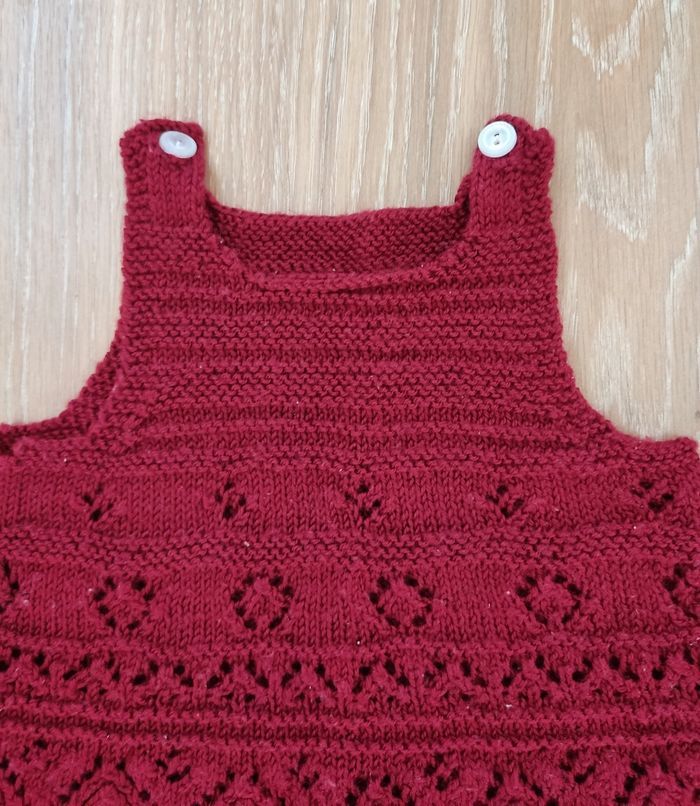Robe tricotée, de couleur bordeaux, en très bon état. Taille 6 mois.
