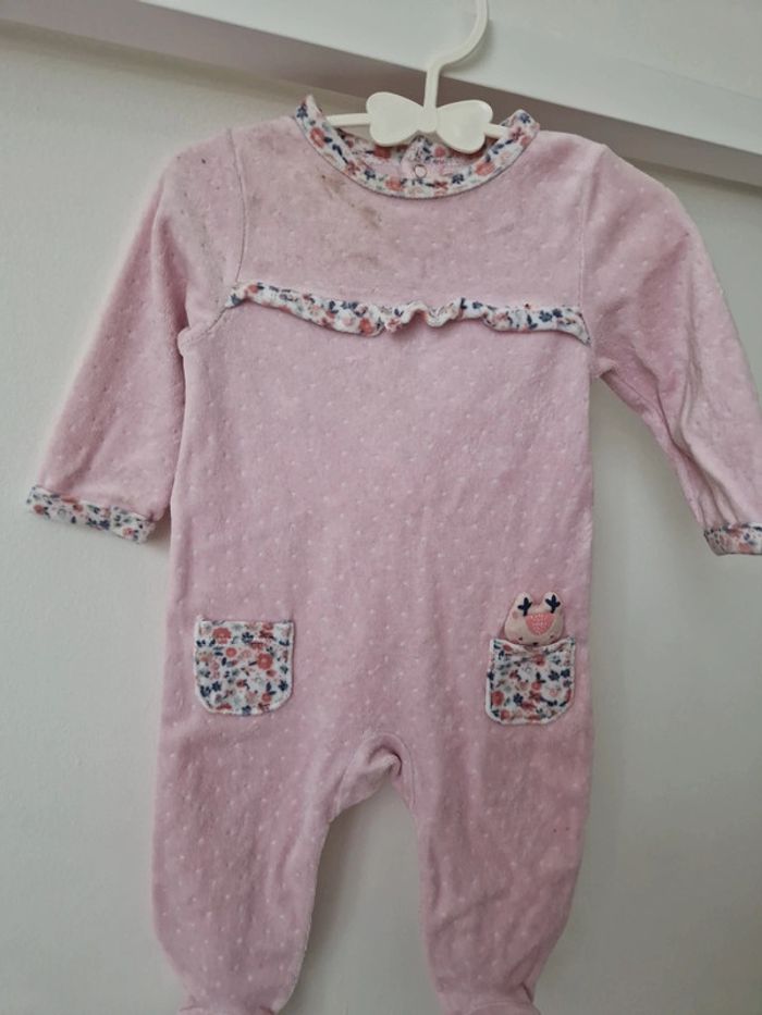 Combinaison pyjama velours rose 6mois - photo numéro 2