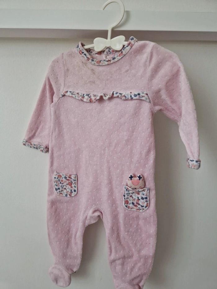 Combinaison pyjama velours rose 6mois - photo numéro 1