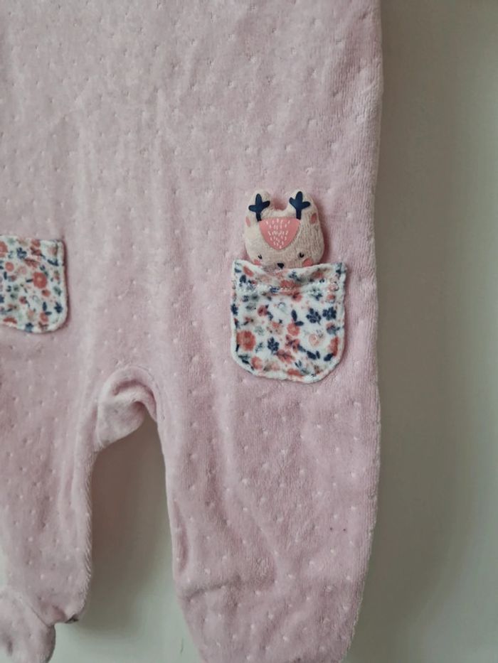 Combinaison pyjama velours rose 6mois - photo numéro 3