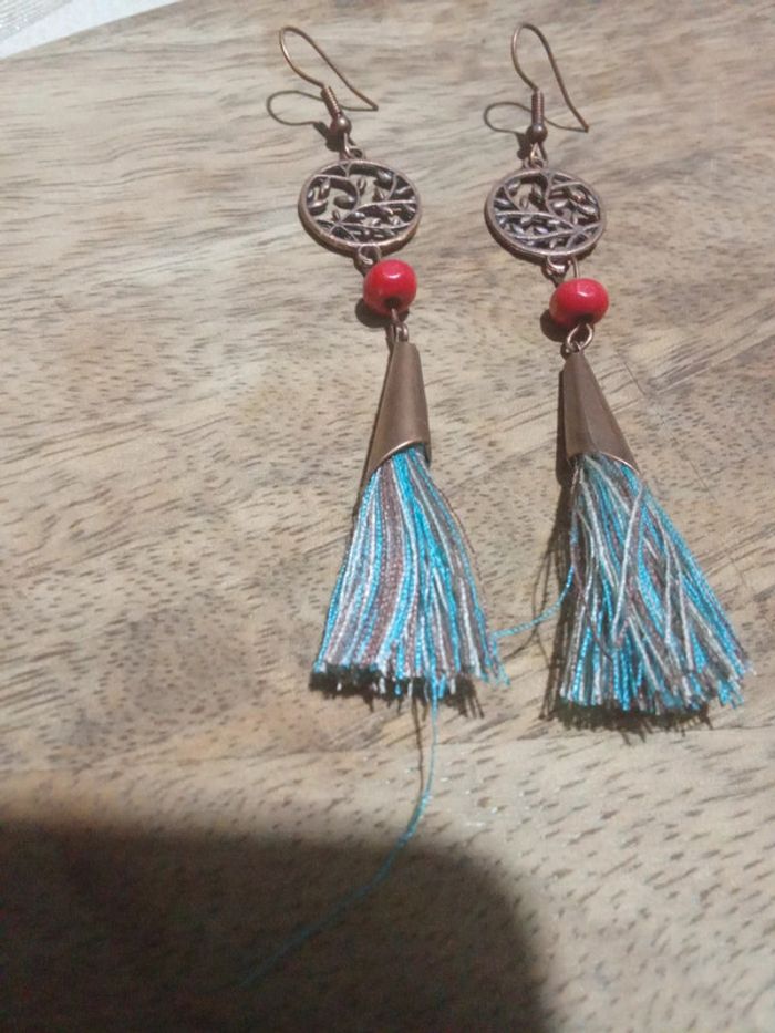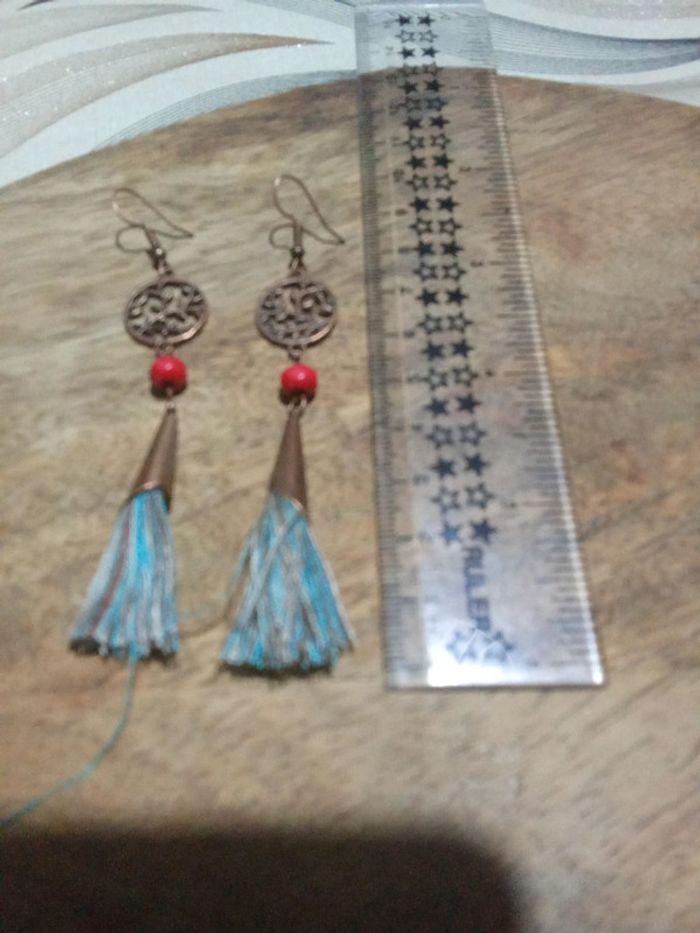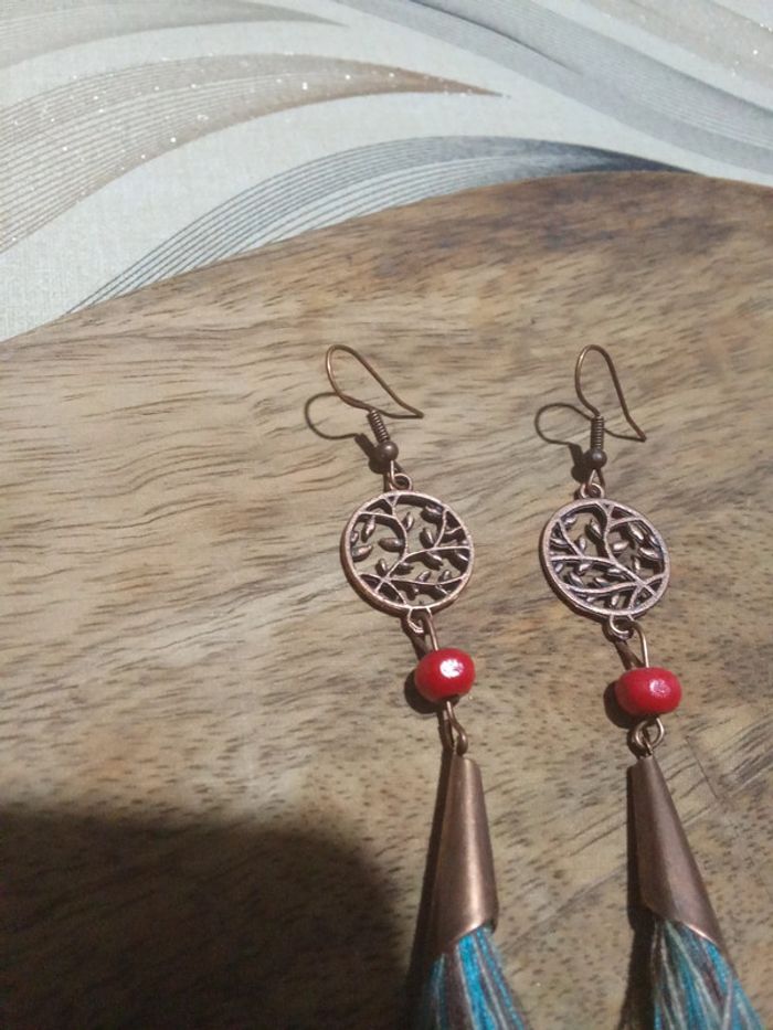 Boucles d'oreilles pendante avec fil et rond motif arabesque - photo numéro 4