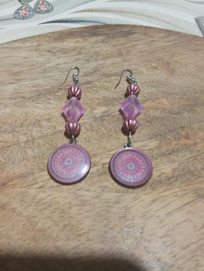 Boucle d'oreilles pendante couleur rose mauve - photo numéro 1