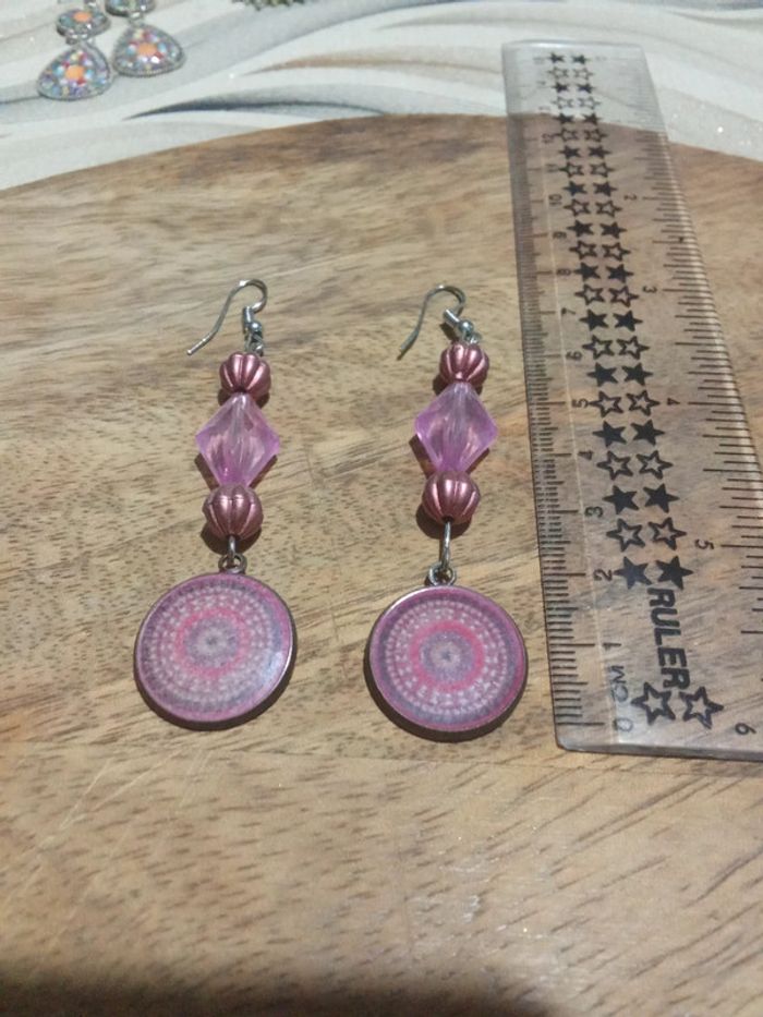 Boucle d'oreilles pendante couleur rose mauve - photo numéro 2
