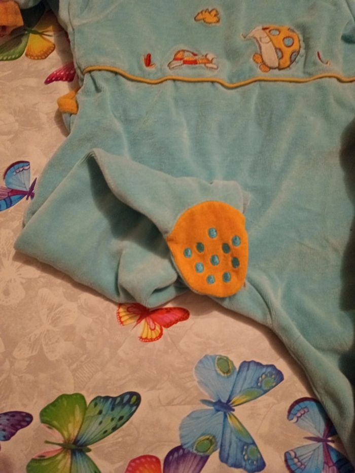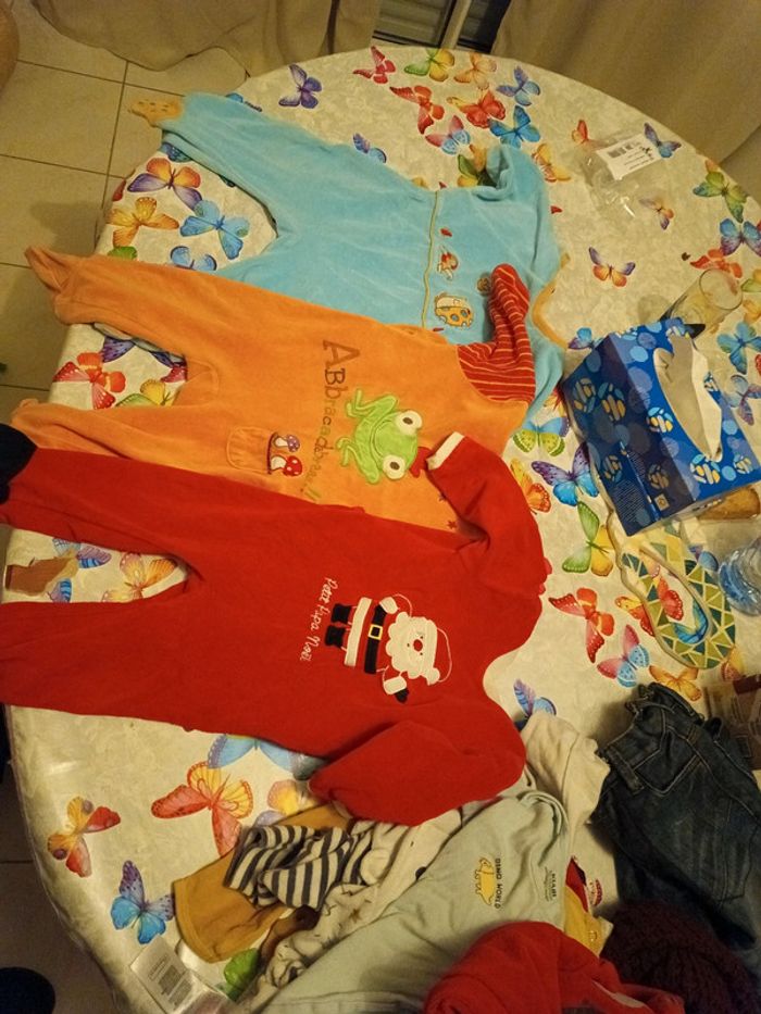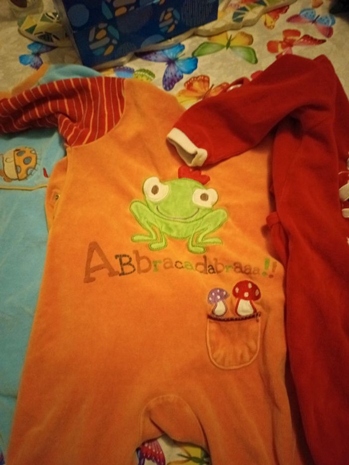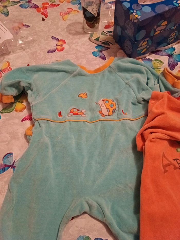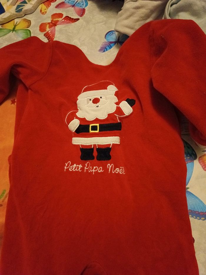 Très bon état Le pyjama bleu a les pieds anti derapants marque carré blanc Le saumon marque kitchoune Le rouge papa noël sans marque