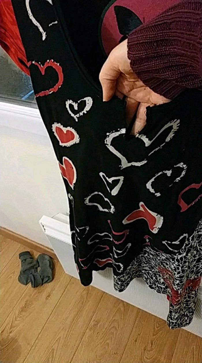 Très belle robe Desigual noire motifs cœurs Taille M Déjà portée Voir dernière photo car col un peu usé Le reste est en très bon état #38limasirene #etelimasirene #robeslimasirene