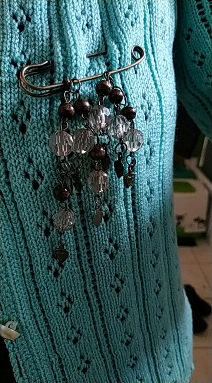Broche Epingle vintage perles et coeurs - photo numéro 3