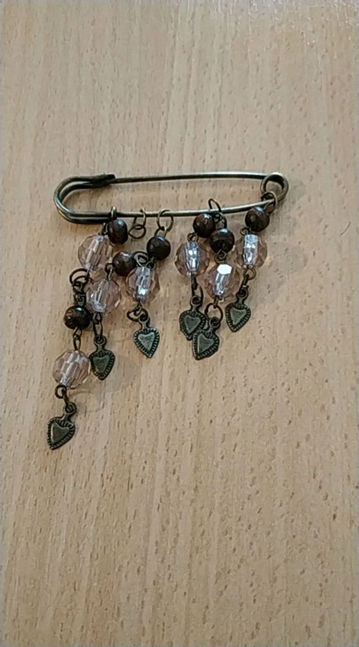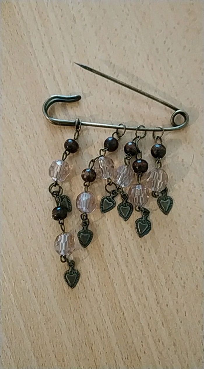 Broche Epingle vintage perles et coeurs - photo numéro 1