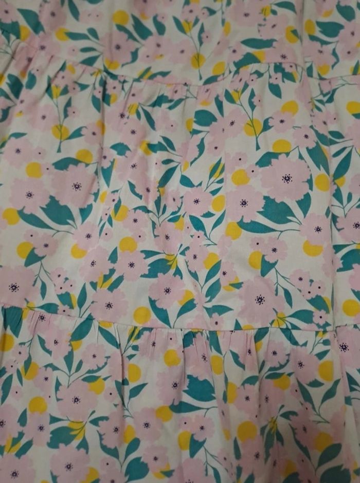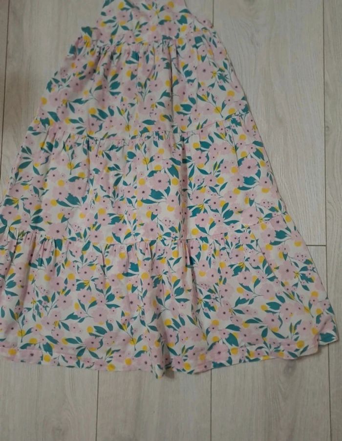 Robe longue état impeccable Attention ce modèle étiqueté 5A taille très grand et correspond à un 7A. Bretelles ajustables. Imprimé fleuri rose/jaune et vert