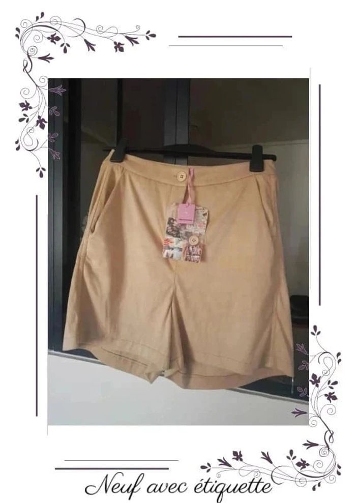 Short taille haute NEUF - la fée maraboutee - taille 38 M - beige daim - photo numéro 1
