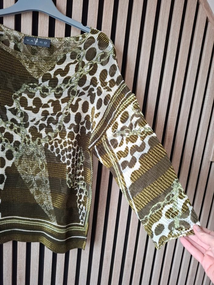Haut  blouse beige vert kaki  vintage Vango T unique - photo numéro 1