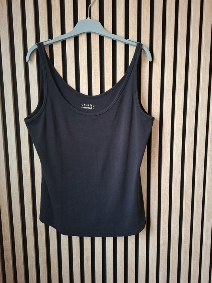 Top débardeur noir Camaïeu essentiel T 42/44 Debardeur noir Étiquette taille coupée, je vous donne les mesures à plat Aisselles à aisselles environ 50 cm Hauteur environ 61 cm Suivez mon lien pour mes autres vêtements femmes T 42 ou 44 #clementine13430femmest42 #clementine13430femmest44 #topnoir42 #topnoir44 #topnoir4244