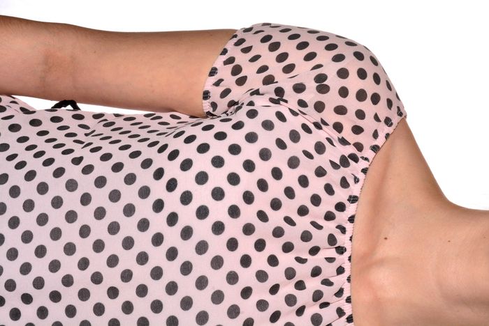 tshirt rose clair motif pois noir col rond taille S - photo numéro 4