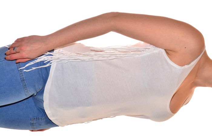 débardeur blanc uni confortable fluide col rond franges latérales taille S - photo numéro 2