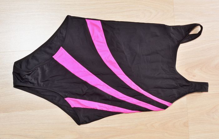 maillot de bain sportif une pièce noir à bandes roses taille M - photo numéro 1