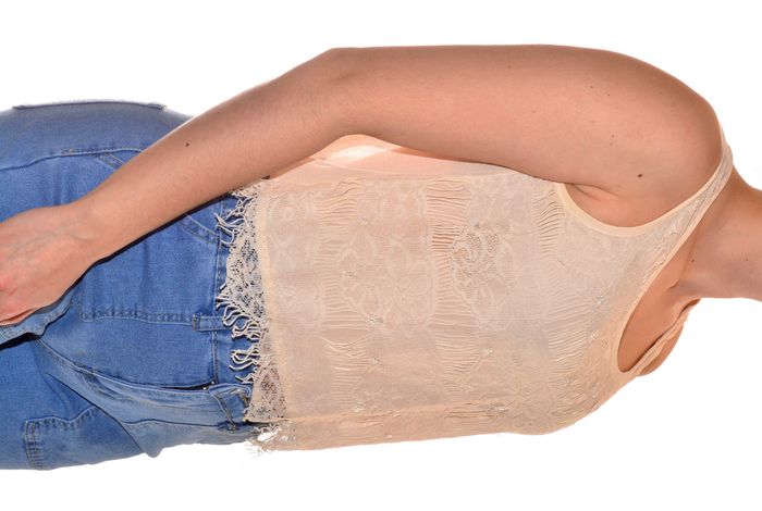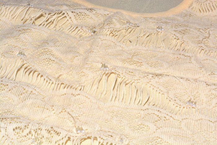 débardeur crème beige uni court col rond perlé franges brodé taille S transparence au dos - photo numéro 5