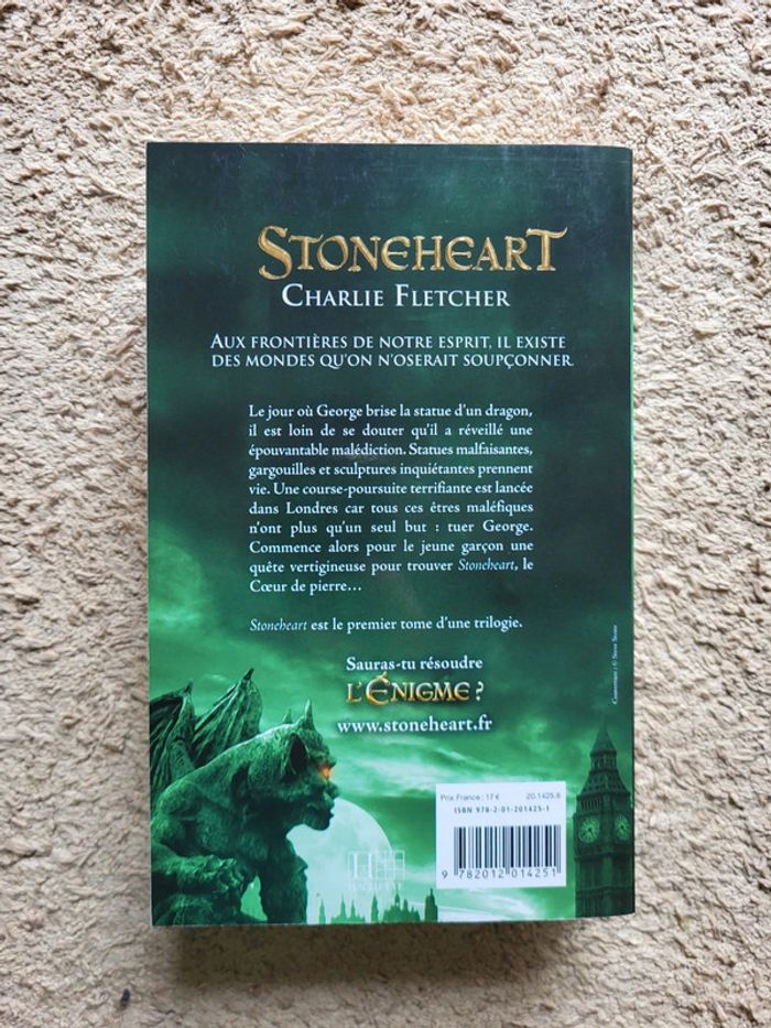 ⭐️ Nombreux livres dans mon dressing et réductions sur les lots activées ✨️ . Roman de Charlie Fletcher "Stoneheart" . Livre de 472 pages en très bon état . Statues malfaisantes, gargouilles et sculptures inquiétantes prennent vie. Une course-poursuite terrifiante est lancée dans Londres car tous ces êtres maléfiques n'ont plus qu'un seul but : tuer George. Commence alors pour le jeune garçon une quête vertigineuse pour trouver Stoneheart, le Cœur de pierre.