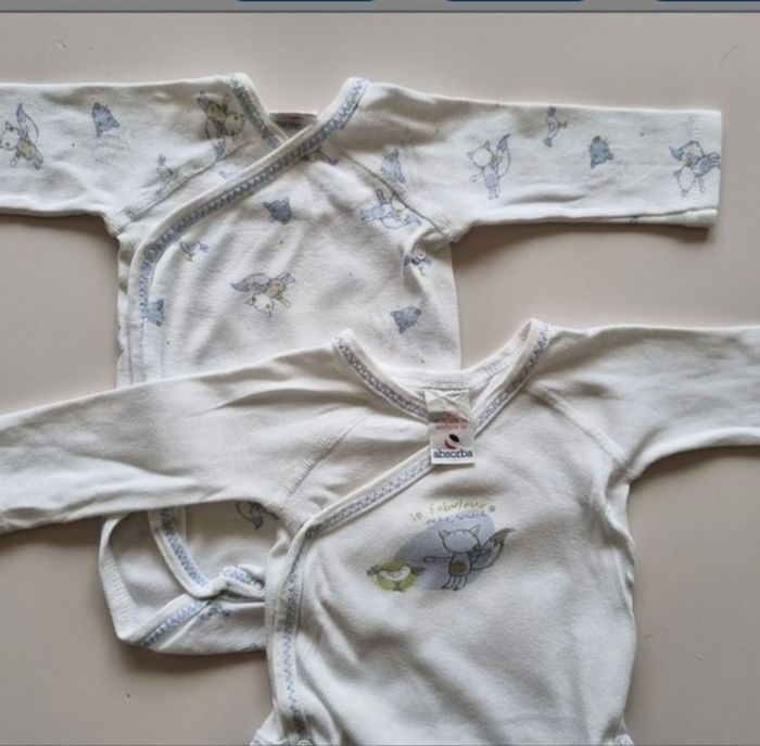 Lot 8 bodies 1 mois Lot de 8 bodies mixtes manches longues 1 mois > 2 petit bateau (lot 2 jaunes) > 6 absorba Ouverture facilitée par le devant Portés mais bon état