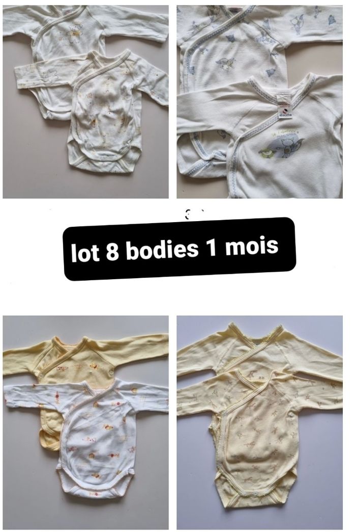 Lot 8 bodies 1 mois manches longues