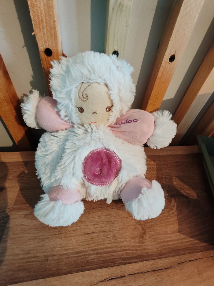 Doudou boule poupon poupée KALOO Igloo rose et blanc 18 cm environ Tbe 17 euros Envoi en relais Étiquette marque présente