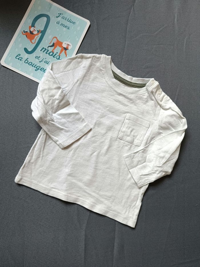 Heureuse que vous ayez atterie sur mon dressing 🥰 🛍️ Découvrez une sélection adorable de vêtements dans la taille de vos petits - n'hésitez pas à utiliser le filtre 💸 Profitez de réductions irrésistibles à partir de 2 articles achetés. Les négociations sont possibles, dans la limite du raisonnable. 🤗 Faites plaisir à vos enfants sans vous ruiner ! 🧸Détail du vêtement : - T-shirt à manches longues de couleur crème - en très bon état. - Taille 9 mois (68/72 cm)