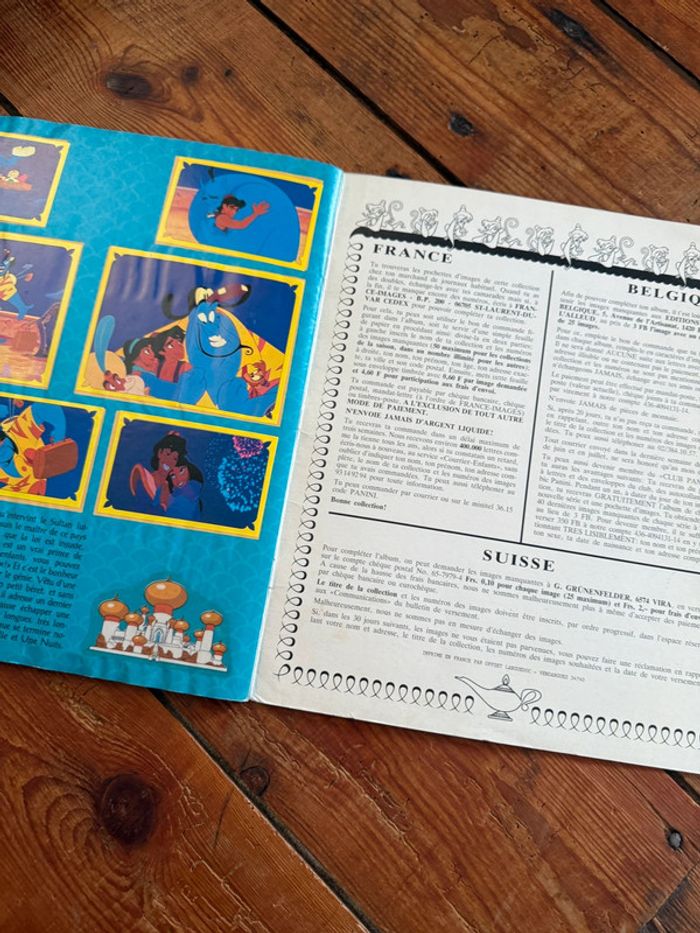 Livre album Panini complet Disney Aladdin génie Prince Ali stickers autocollants