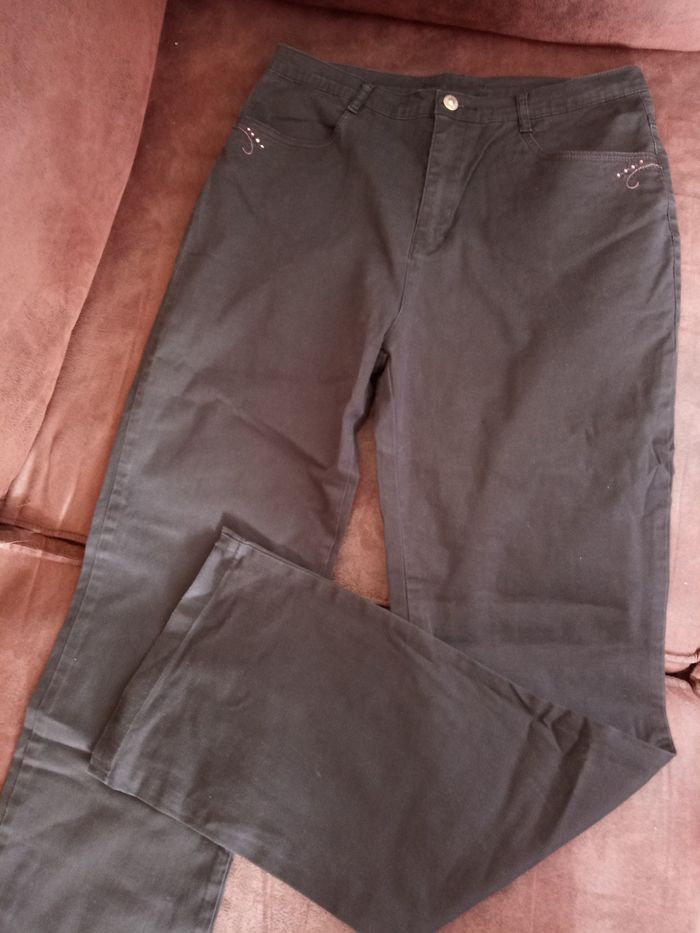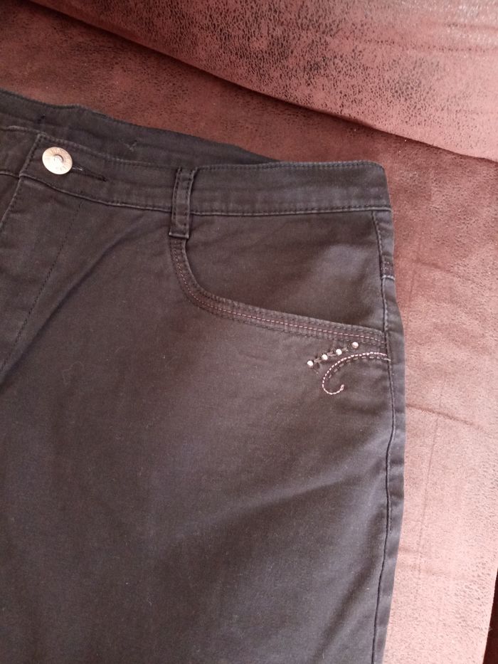 Pantalon T38 "I. Quing" Couleur: Noir uni avec petits motifs et brillants Se ferme par 1 bouton pression et fermeture éclair poches devant et derrière Dimensions: Longueur 101,5cm - Entrejambes 73,5cm - Taille non étirée 37cm Matière: Coton + Spandex Pantalon d'occasion en parfait état (juste quelques brillants qui sont partis) (vendu comme sur les photos)