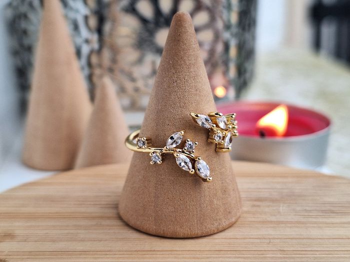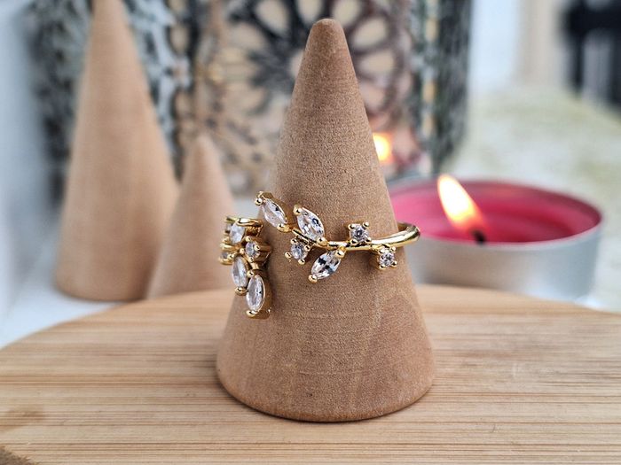 Bague ouverte avec strass Détail Feuille en Acier Inoxydable Bague de fiançailles Cadeau pour elle