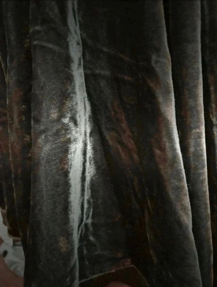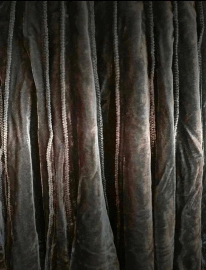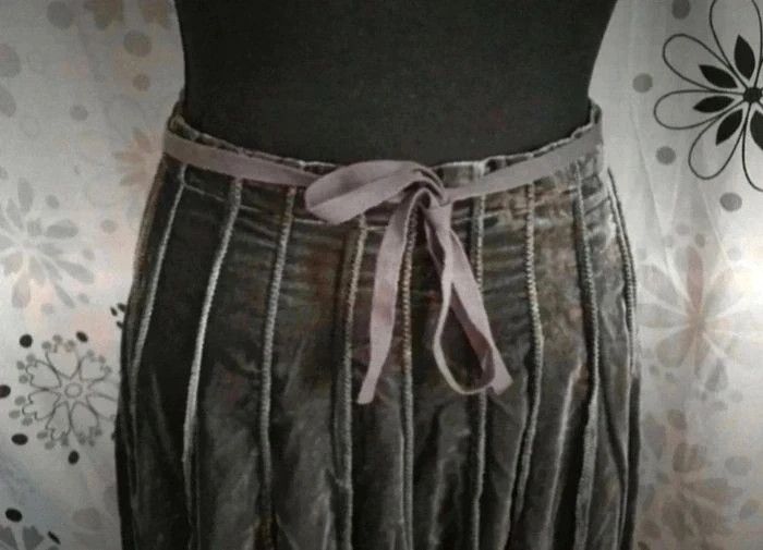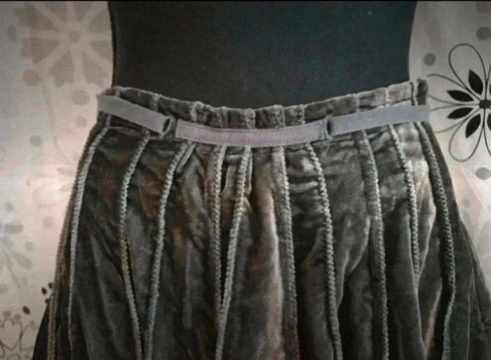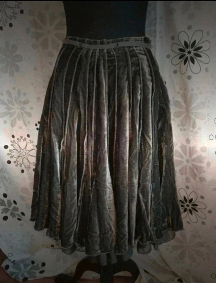 Jupe assez lourde dû au tissu aspect velours (75% viscose et 25% polyamide), doublure en polyester.