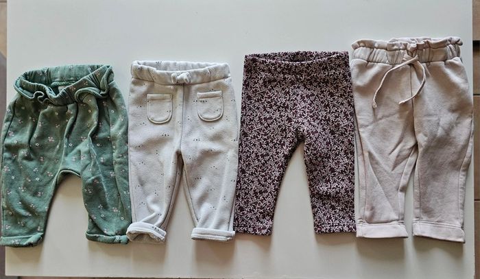 Lot de 4 pantalons bébé fille matière douce, 6 mois différentes marques