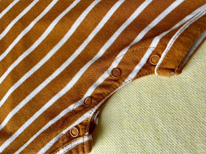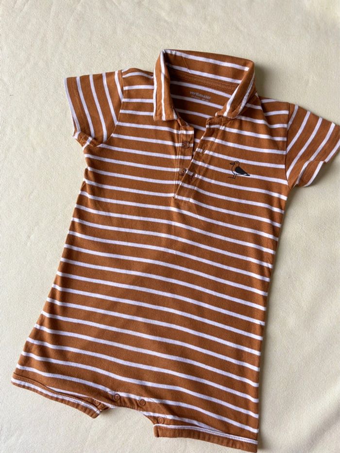 Combinaison courte bébé été vertbaudet motif rayures marron blanc avec oiseaux - photo numéro 5