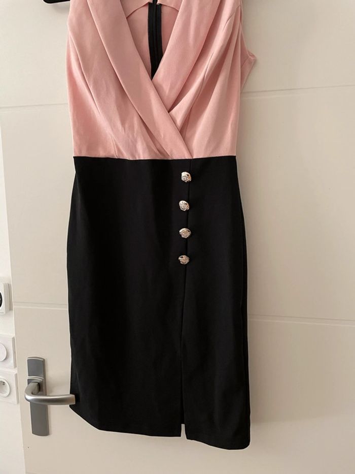 Robe rose saumon et noir avec petit fente - photo numéro 1