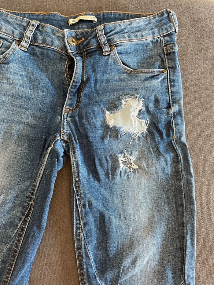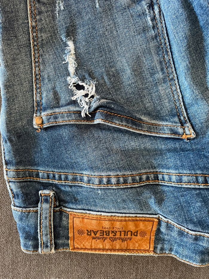 Il es en parfait état d’où la bonne marque d’un jeans qui présente aucun marque d’usure ( meme les ouvertures faite volontairement part pull&bear son en parfait état )