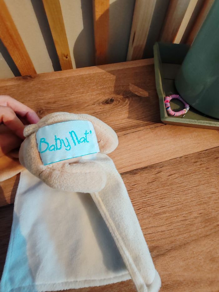 Baby'Nat Doudou mouchoir lapin marron clair Tbe Étiquette marque présente 9.90.euros Envoi en relais