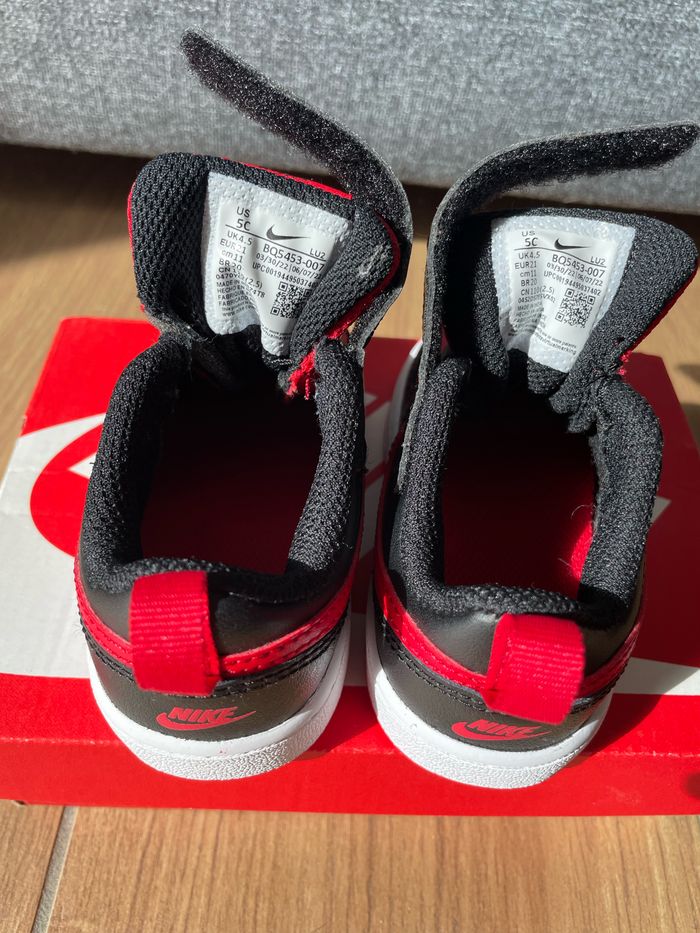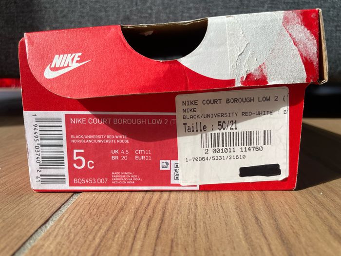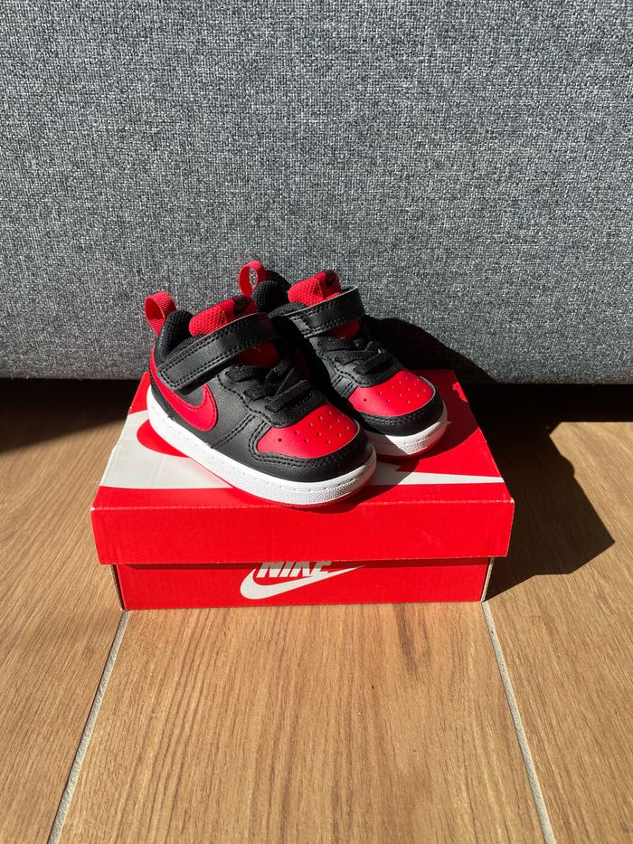 💬 Nike Court Borough Low 2. Lacets élastiques et scratch. Unisexe, mixte. État neuf, jamais portées. Dans sa boîte d’origine. 🎨 Coloris noir et rouge (Black/University Red-White) 🛍️ Marque Nike 📏 Pointure 21 🆕 Prix neuf 44,99€