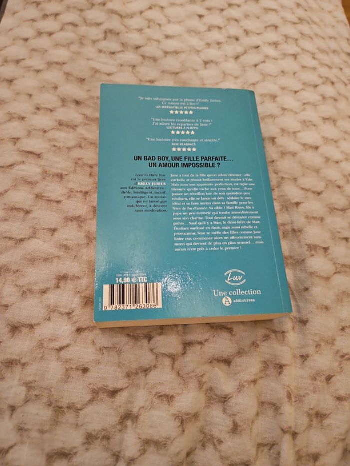 Love to hate you Livre de emily jurius Édition addictives Très bon etat (à l'exception du pli central du a la lecture, livre de pres de 360 pages) Valeur 14.9e Achats en lots possibles dans mon dressing avec ristourne et réductions sur les frais d'envois