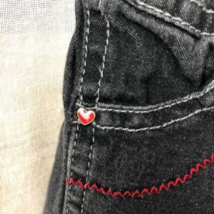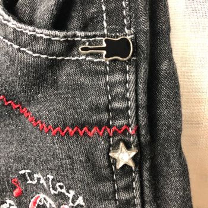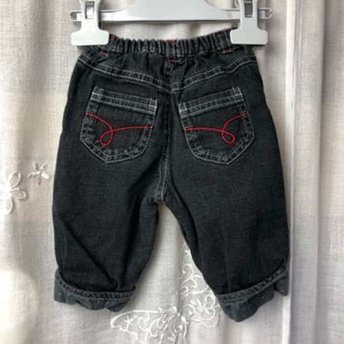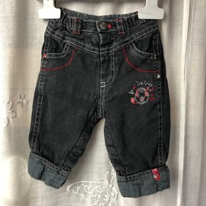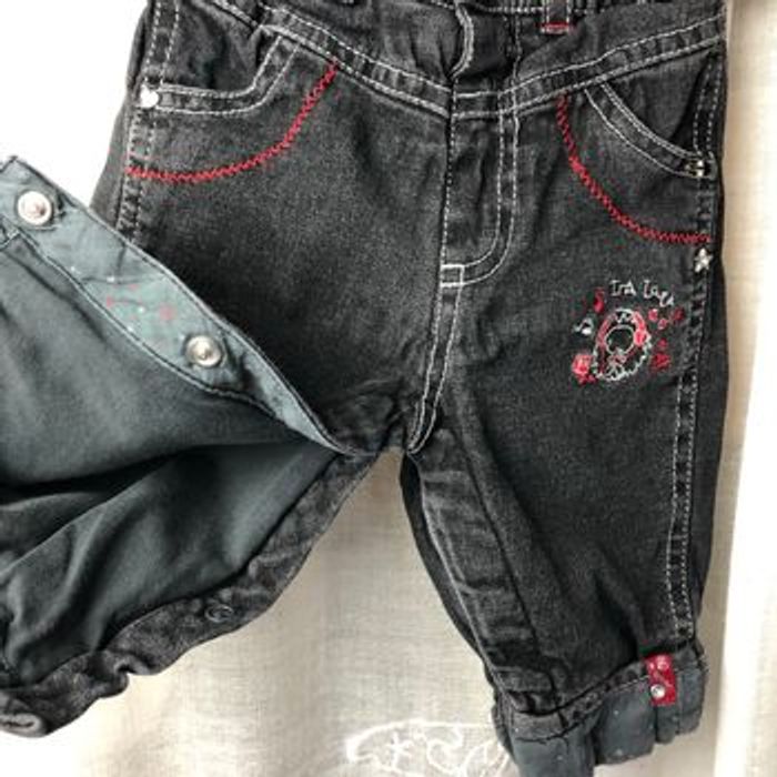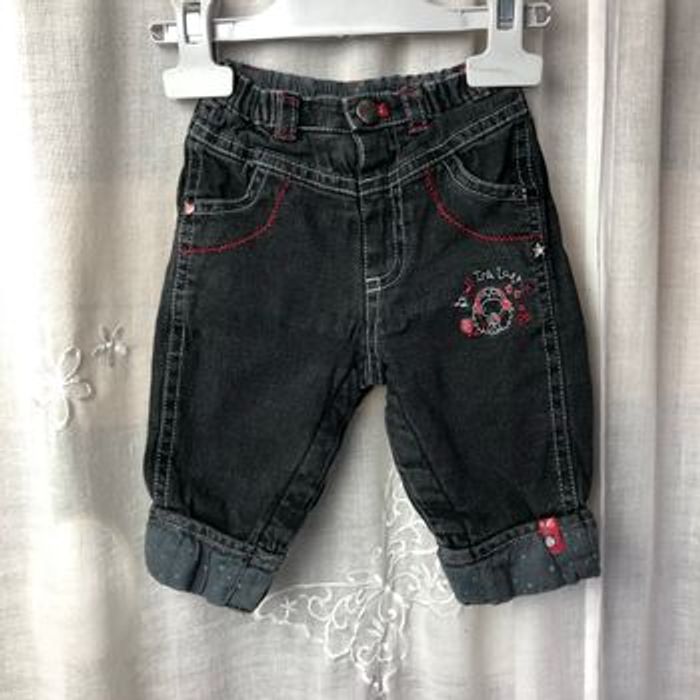 Pantalon jeans noir avec revers étoilés entièrement doublé Surpiqûres rouge, thème musique, guitare étoile Coeur rouge Taille 3 mois 60 cm Sergent-major