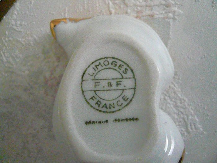 Salière et poivrière en véritable porcelaine de Limoges et dorures – Années 1960. Pour donner de l'éclat à votre table, ancienne paire de salière et poivrière avec leur petite cuillère, l'ensemble dans un joli écrin. Salière et poivrière en forme de coquillage, finement décorées de violettes. Neuf, jamais servi.
