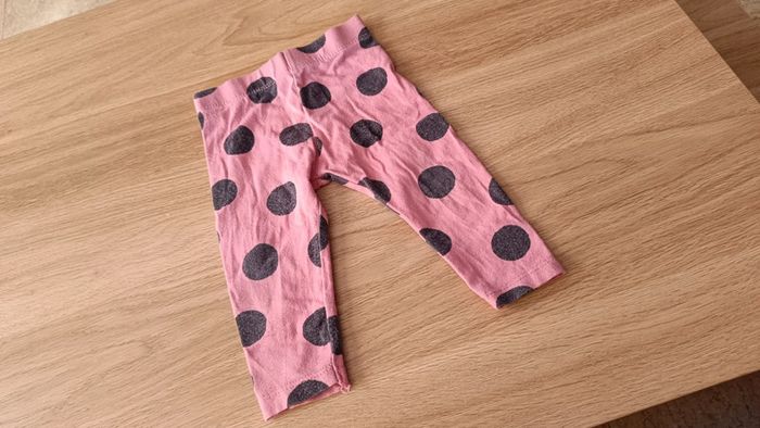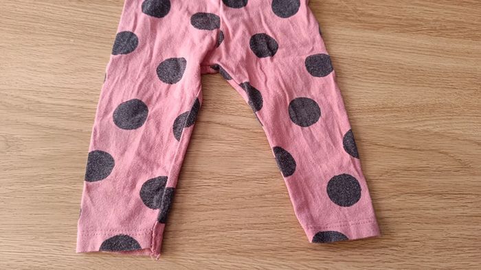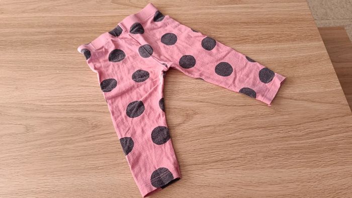 Legging rose à pois noir Taille élastique 9 mois #legging #rose #pois #noir #fille #9mois #marylene025fille9mois