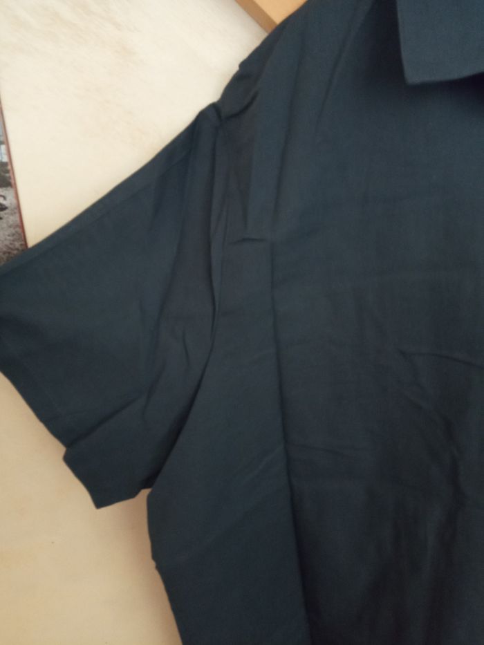 Chemisier décontracté Taille 5 XL Couleur: Bleu Marine uni Forme simple et décontractée Sans épaulettes, Manches Courtes, Fermé devant par boutons Dimensions: Longueur 74,5cm - épaule à épaule 52cm - aisselles à aisselles 71cm Matière: 95% Coton + 5% Polyester (légère) Chemisier Neuf, jamais porté (vendu comme sur les photos)
