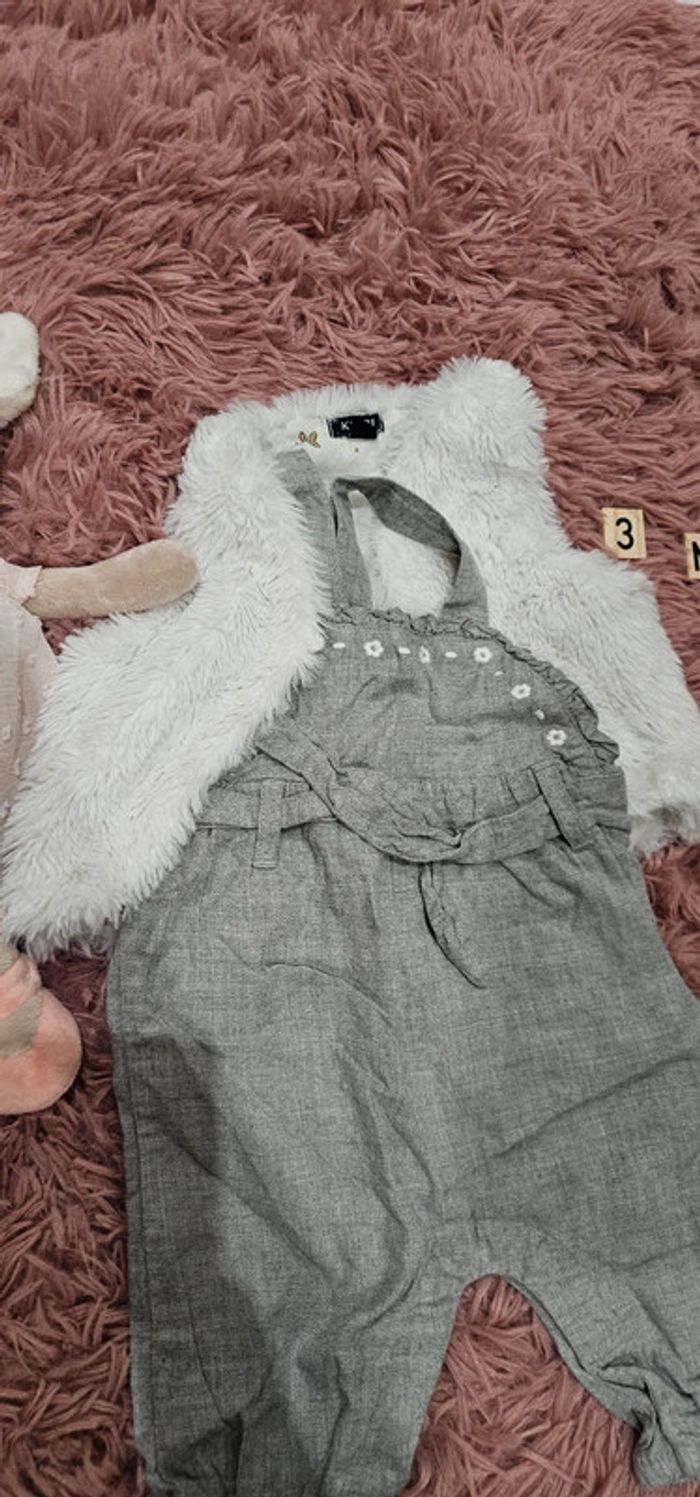 Ensemble bebe fille salopette grise et son gilet blanc fourrure taille 3 mois