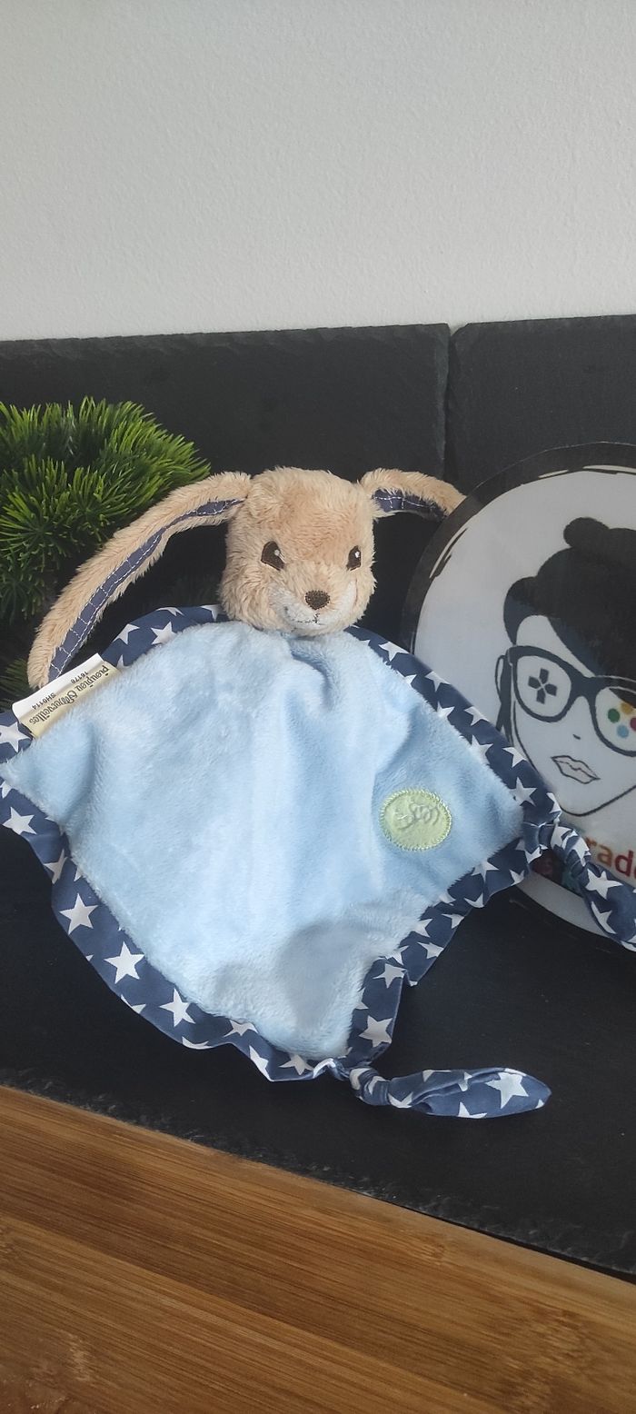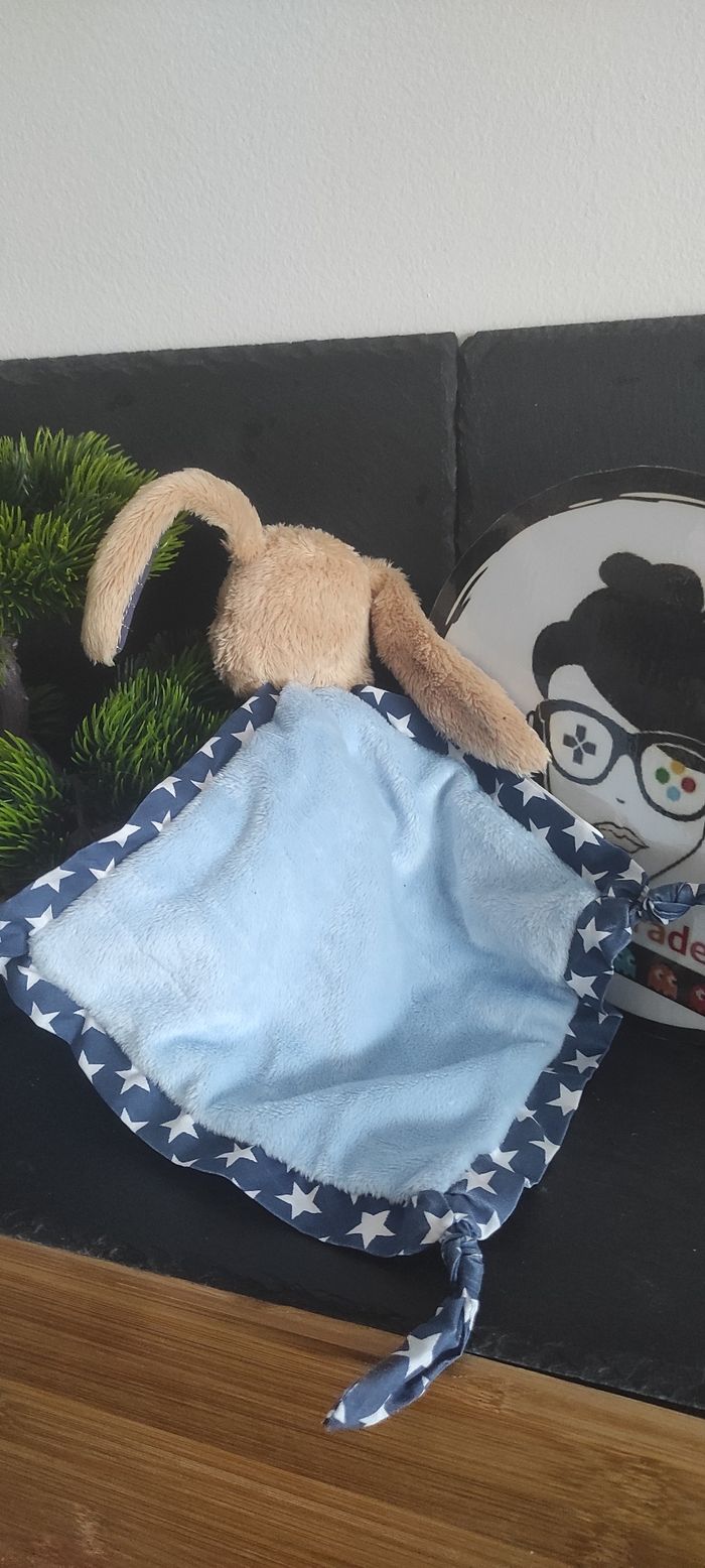 doudou lapin pioupiou et merveilles bleu etoiles marron rond vert Noeuds Blanc - photo numéro 1