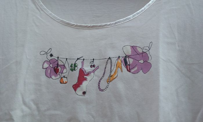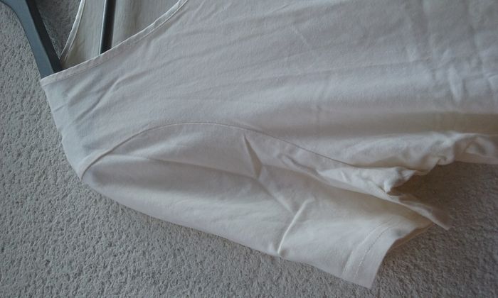 T-shirt blanc cassé, 100% coton, une petite tache au dos (cf dernière photo), taille petit.