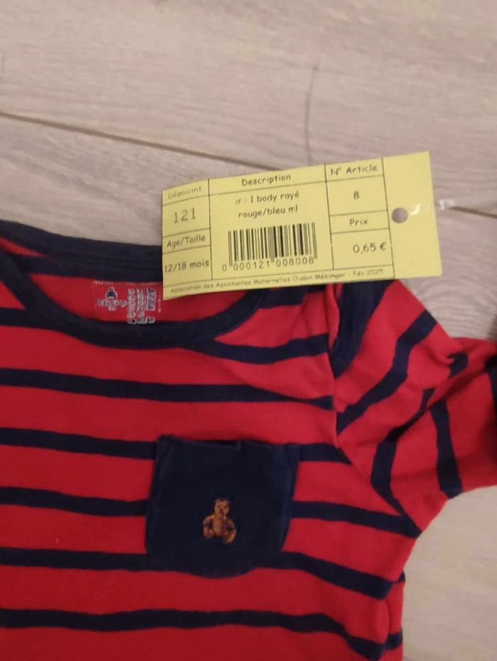 1 body rayé TB état 0,65 cts Mise en vente de mes articles invendus en bourse ce jour, petits prix, très bon état (sans trous, ni tâches). Réduction lot activée. Me demander pour tout renseignements