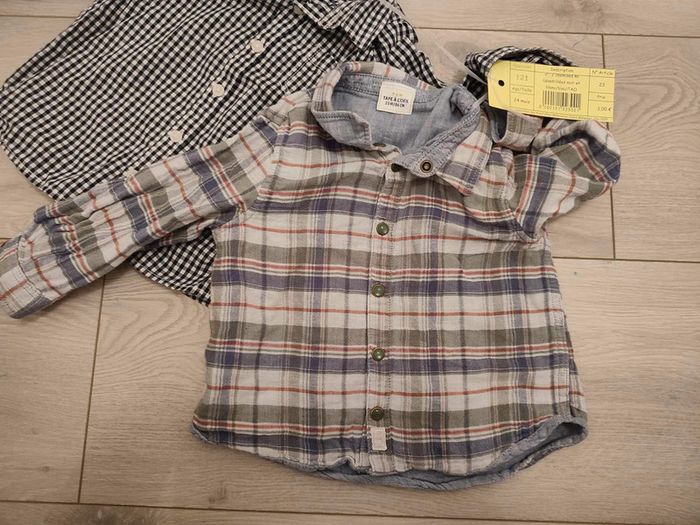1 chemise quadrillée noire ml TAO 1 chemise blanc/bleu TAO TB état Mise en vente de mes articles invendus en bourse ce jour, petits prix, très bon état (sans trous, ni tâches). Réduction lot activée. Me demander pour tout renseignements