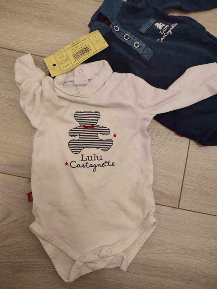 1 body LULU CASTAGNETTE bleu marine 1 body LULU CASTAGNETTE blanc Mise en vente de mes articles invendus en bourse ce jour, petits prix, très bon état (sans trous, ni tâches). Réduction lot activée. Me demander pour tout renseignements