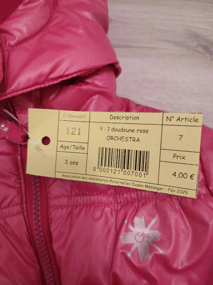 1 doudoune rose ORCHESTRA TB état Mise en vente de mes articles invendus en bourse ce jour, petits prix, très bon état (sans trous, ni tâches). Réduction lot activée. Me demander pour tout renseignements