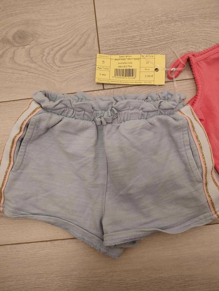 1 short bleu avec liseret paillette TAO 1 body rose bretelle ORCHESTRA TB état Mise en vente de mes articles invendus en bourse ce jour, petits prix, très bon état (sans trous, ni tâches). Réduction lot activée. Me demander pour tout renseignements