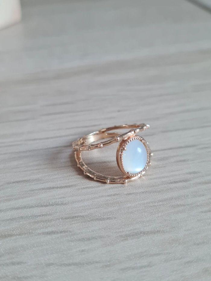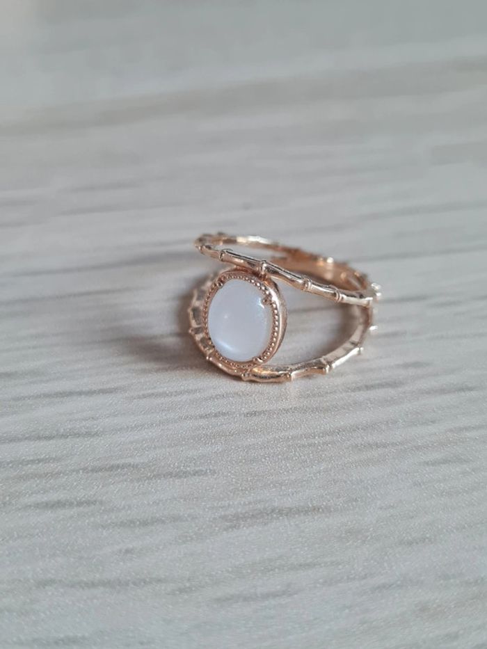 Bague ajourée en plaqué or et pierre de lune taille 54 lithothérapie grossesse femme enceinte - photo numéro 2